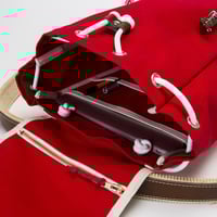 Materials: 100% cotton canvas, cow leather, felt padding, nickel metal buckets, cotton details, polypropylene sailing rope